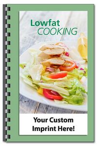 1. Low Fat Cooking Cookbook. Did you know that you can imprint your logo on books and use them as promotional items? This Low Fat Cooking Cookbook is a great gift or Wellness Initiative Kick-Off prize.