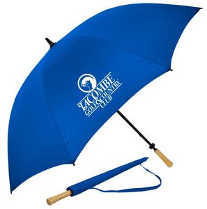 I have to say that I use a golf umbrella all the time. The extra large coverage area is perfect for golfing or just bringing in the groceries on rainy days. Which means it will get used and offer your company exposure on and off the golf course. It's lightning and wind resistant. You can print your logo on the umbrella and/or engrave your logo on the wooden handle.