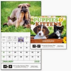 Most people find puppies and kittens to be irresistibly cute, so how about an appointment-style Puppies & Kittens Wall Calendar with twelve different images? It's just one of many useful items that appeal to both pet owners and pet lovers while advertising your business.