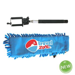 One of the promotional selfie sticks we like the best is this Wireless Selfie Stick with Frizzy Bag. Use the frizzy bag to clean your phone or camera. The stick has a wireless button and supports Bluetooth products so you can get more angle variations, fit more people into the picture, get above or below for unique views.